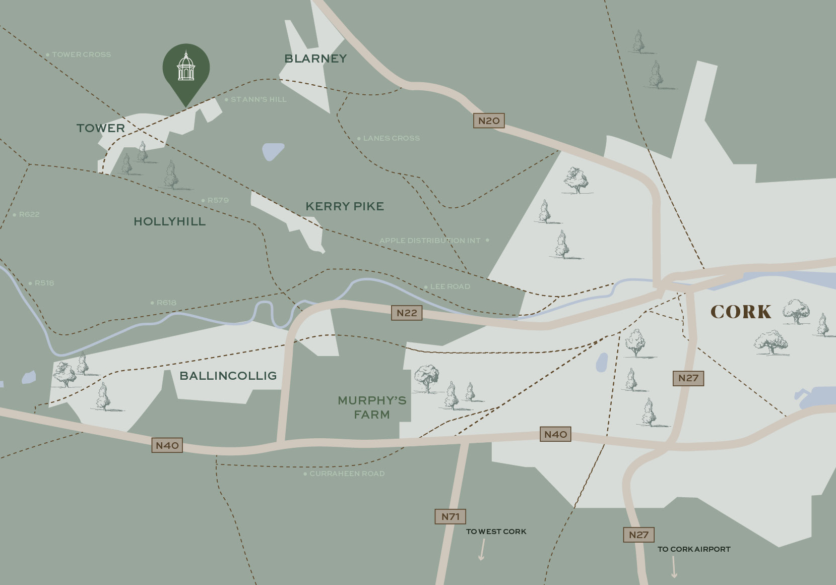 Perfectly positioned between serene countryside and a thriving urban centre, Hydro Manor offers the best of both worlds. Just a short drive from Cork City, it provides effortless connectivity for those working in the city while placing world-class dining, stylish boutiques, theatres, galleries, and lively cultural events within easy reach. After a day in the city, residents return to the calm and luxury of their Hydro Manor home.